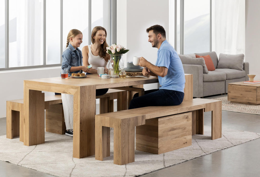The Transformer Dining Set™ 4.0 is a smart furniture collection inspired by the textures and colors of nature that is designed to accommodate small spaces, large groups, and everything in between.